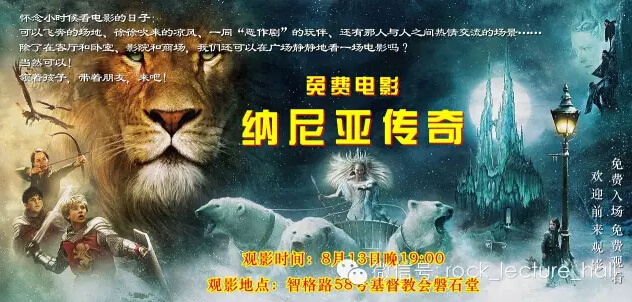 还记得小时候在村里坐着小板凳观看投射在白色幕布上的电影的场景吗?有过这样经历的人可能会觉得,即便现在可以在电影院观看3D影片,小时的回忆仍是那么美。8月13日,杭州下沙磐石堂可以带你重温儿时记忆,该堂将在磐石堂广场观看《纳尼亚传奇》。