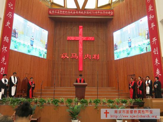 8月22日,南京市鼓楼区基督教纪念中国人民抗日战争暨世界反法西斯战争胜利70周年“和平祈祷”及音乐会在道胜堂举行。来自全区的唱诗班及各堂点平信徒代表约600人参加此次活动。