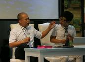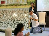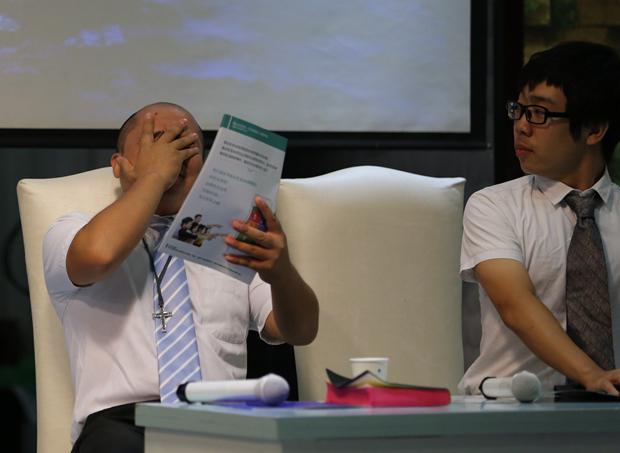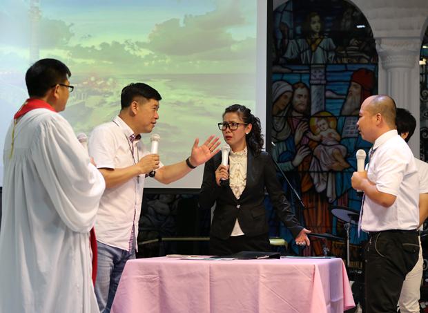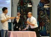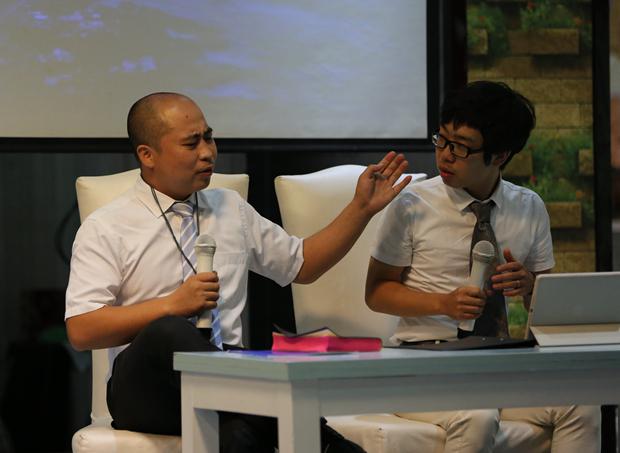 在第二届基督教艺术品博览会的爱宴环节,冯凯长老与四位弟兄姐妹通过一场圣剧讲述了基督徒企业存在的错误用人观、基督徒错误的工作观等问题。