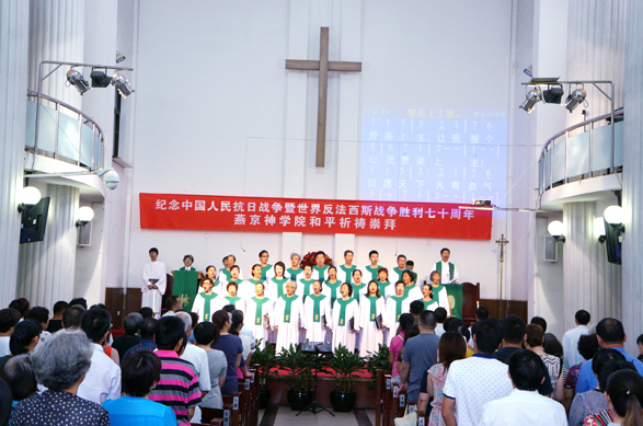 8月30日上午10点,燕京神学院举办纪念中国人民抗日战争暨世界反法西斯战争胜利70周年和平祈祷崇拜会,一百多人共同缅怀抗战历史、祈祷和平。