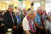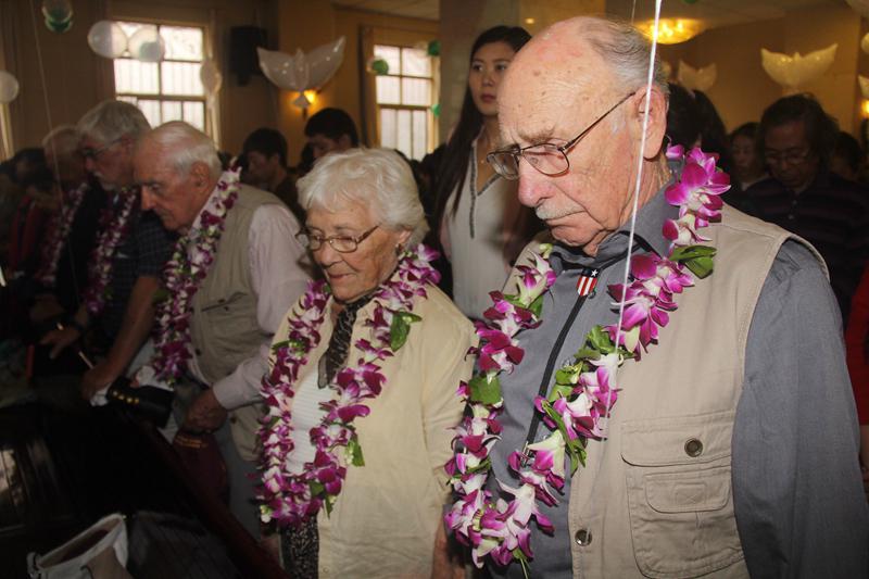在用中英文诵读《圣弗兰西斯祷文》之后,飞虎队老兵及家属们与三一堂的其他教牧人员和信徒同领圣餐,同声为世界和平祈祷。“不认罪是一种罪,不饶恕也是罪,求天父赐给我们力量,在基督里能饶恕别人,求主使中国和日本能够和好,让中国人、美国人和日本人都能成为上帝的子民,让我们都成为新以色列人,都归向上帝。求主除去我们心中的仇恨,将平安赐给每一个人。”代祷的牧师说。