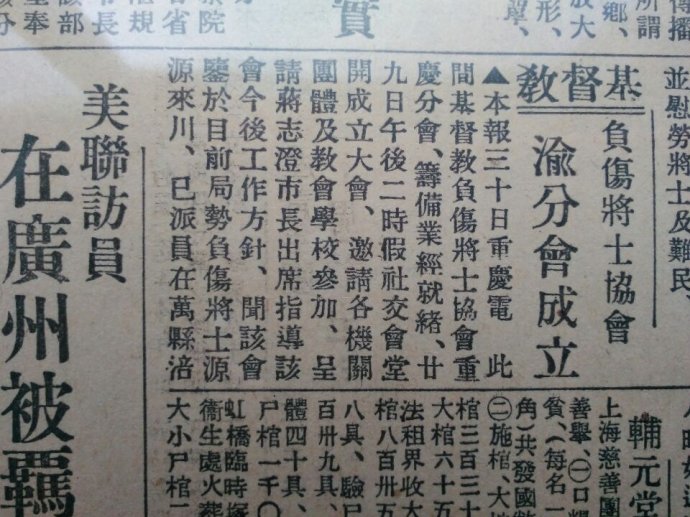 一张发黄的报纸,将70多年前一个不为人熟知的机构展现在众人面前——基督教负伤将士协会。