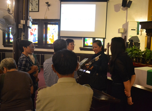 分享结束时,几位弟兄姐妹围着冯珊老师问问题(图:福音时报)