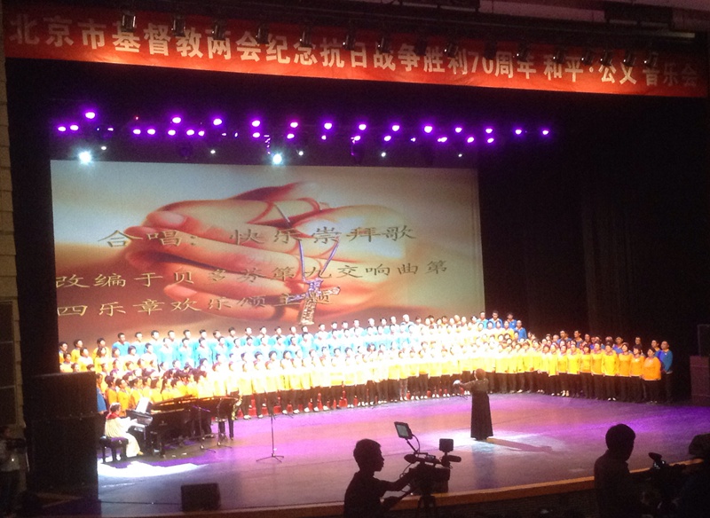 2015年9月20日晚,北京基督教和平·公义音乐会在世纪剧院举办,用纪录片、诗歌、舞蹈、诗朗诵等方式纪念中国人民抗日战争暨世界反法西斯战争胜利70周年。