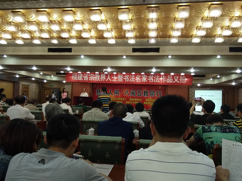 此次“慈善人间,八闽五教同行”2015年“宗教慈善周”书法义拍活动由福建民族宗教厅主办,福建省五大宗教团体联办,共100多幅书法作品,皆由宗教界人士及知名书法家提供。据称,拍卖所得的所有善款将全部用于支持福建省少数民族乡村社会公益慈善事业。