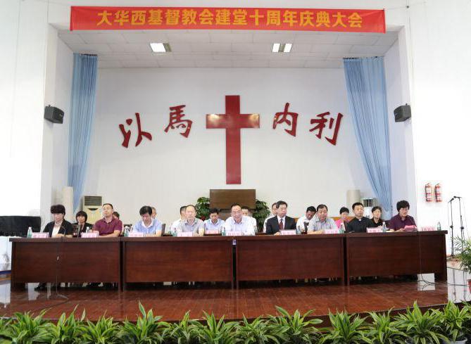 庆典由江阴市三自爱国会主席熊娟芬牧师主持。大华西基督教堂负责人戴亚萍作建堂十周年以来福音事工报告,江苏省宗教局顾传勇副局长,江苏省三自爱国会主席、江苏神学院院长张克运牧师,无锡市基督教协会会长李鹏飞牧师,江阴市宗教局卞宏局长、华西村党委吴协恩书记等领导嘉宾做热情洋溢的讲话。