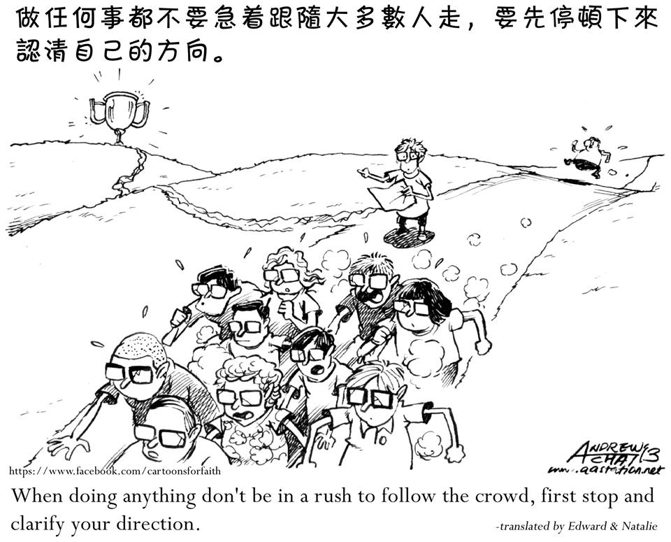 2、做任何事都不要急着跟随大多数人走,要先停顿下来认清自己的方向。