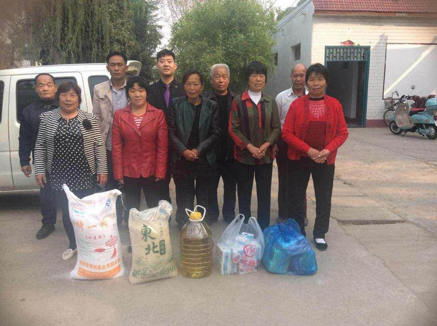 10月20日上午,值2015年重阳节到来之际,河南省禹州市梁北镇董村店基督教会众同工探访镇敬老院,为老人带去价值近千元的生活用品,以及上帝的祝福。