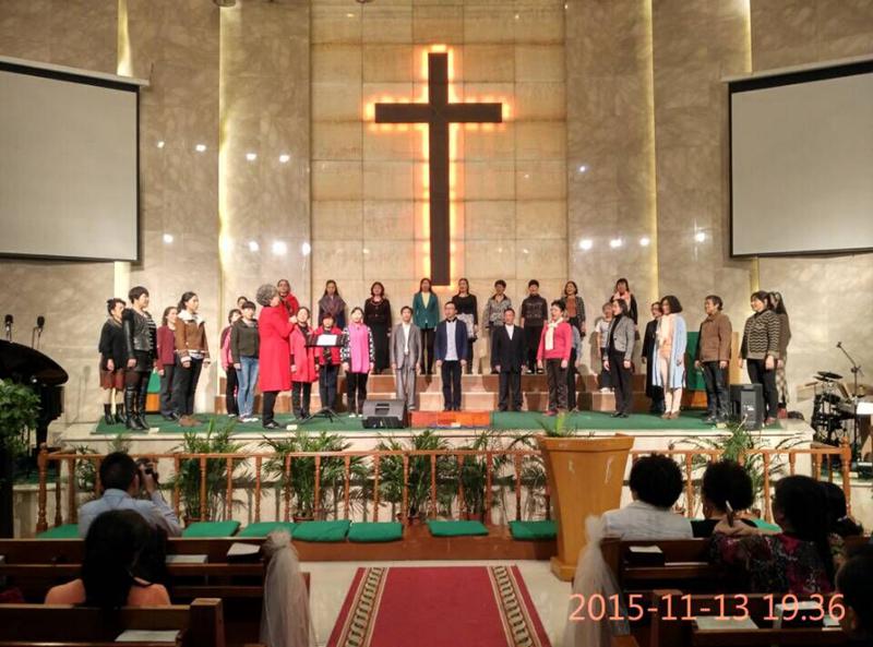 11月14日晚, 全体学员汇集圣爱堂诗班成员一起,分作指挥与声乐两个班,在重庆市圣爱堂进行了教学汇报演出。市基督教两会许伦胜牧师观看后激动地说:“我听了,看了,没想到啊,真不敢相信自己的耳朵,但我相信自己的眼睛,那美妙的天籁之音,那整洁的一招一式指挥,是从我们后身这些最基层教会又没圣乐基础学员身上发出来的,声音是那么样的圣洁,手式是那么样的完美,这是上主借着两位老师在我们重庆学员身上彰显的生命奇迹,是神奇异的恩典啊!”