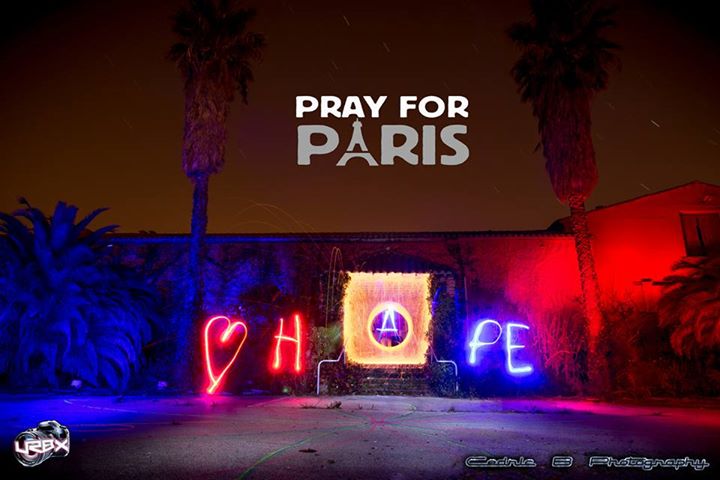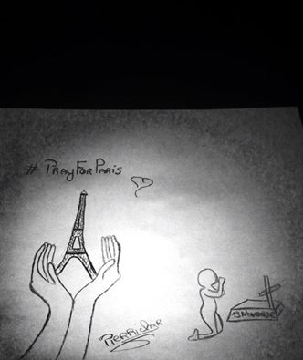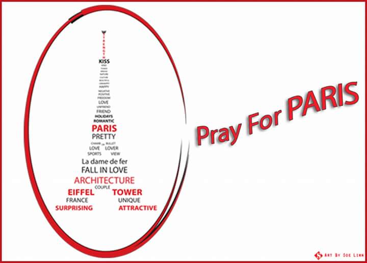 本站收集世界各地网友自发为巴黎祈祷(Pray For Pairs)的50张图片,与读者分享,共同为巴黎、为世界、为和平祈祷。让我们与巴黎民众一起,在面对罪恶肆虐之时,战胜恐惧、战胜绝望、众志成城,带着眼泪不放弃对生活的的热爱。