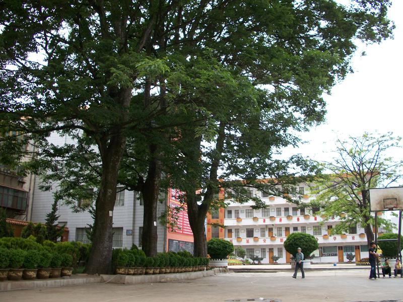 现在留下来的,只有教堂的青石根基,还依稀可见!还有学校对面的三院清朝时的民居,都是英国循道公会购置,作为牧师传教士居所,现在可以说是柏格理等传教士的故居了;柏格理日记描述了,他在会泽传教工作情况。(很巧合的是他的长子赛姆,就是在这里出生的。)另外,遗留下来的,还有教堂旁边,当年传教士栽下的几棵滇朴;现在已经长成百年参天大树了,郁郁葱葱、苍翠挺拔;荫庇和守望着整座教会学校。清风徐来,树枝摇曳着,这几棵大树好像是在见证和述说着那一段悲怆的历史!