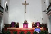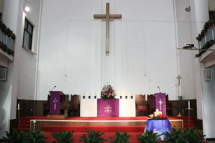 当天,燕京神学院礼拜堂装饰一新,圣台上以印有十字架的紫色圣布装饰,主礼人和证道人也身披紫色圣带,堂内柱子上挂着绿色圆环,其上装饰有金色和红色的花朵。此外,教堂讲台下设置有由五支蜡烛组成的“将临期花环”。