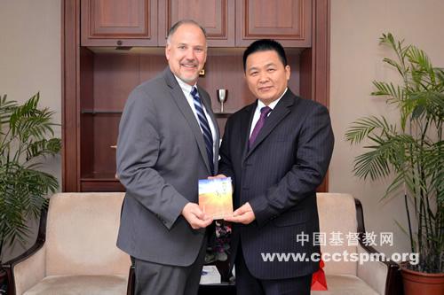 2015年12月7日上午,中国基督教协会副会长单渭祥牧师在本会接待了国际圣经协会总裁卡尔•穆勒博士、国际圣经协会东亚太区总干事罗兆祥牧师等一行3人,宾主双方特别就圣经《当代译本》在中国基督教两会的出版发行进行了会谈。