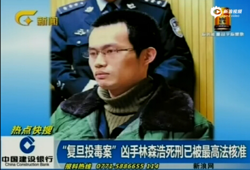 复旦投毒案出现新进展,案犯林森浩的家人12月9日告诉媒体,最高法院已下发核准林森浩死刑的裁定书。