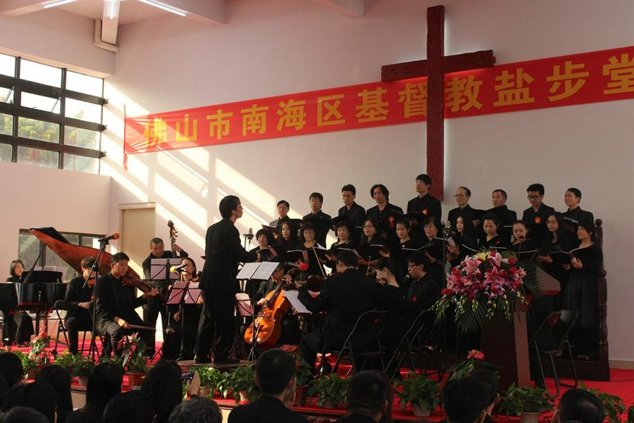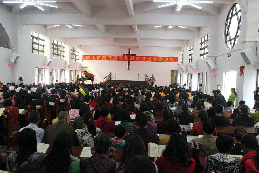 1月2日下午,广东省佛山市南海区盐步基督教“小提琴教堂”举行了献堂典礼。广东省基督教两会主席梁明牧师、会长樊宏恩牧师,佛山市宗教局、市基督教两会代表,香港九龙城浸信会及台湾教会代表,新加坡百盛教会代表,以及广东省内部分市、区同工及信徒两千余人参加。
