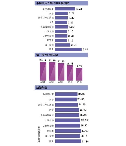 女博士平均恋爱7次、“七年之痒”缩为5年、首次性行为平均年龄低于18岁、初恋平均年龄在12岁、“小三”不分男女……最近,北京大学发布了一个调查报告,将中国人婚恋状况的那层薄如蝉翼的窗户纸一下子给捅破了。