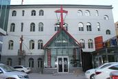 中山堂:坐落在繁华地段的中山堂并不是那么起眼,笔者远远看到屋顶耸立的十字架时心中颇为激动,走近看才发现,教堂被商场、网吧、娱乐城、KTV城等围在了一个角落。据中山堂的朱俊伟牧师说,中山堂所在地过去是个大的四合院,上个世纪90年代,城区改造,四合院被拆迁了,自治区两会出资建了如今的这个新堂。但建完的效果不那么尽如人意,最大的遗憾是周围太多娱乐设施,使得教会周边没有可活动的场地。
