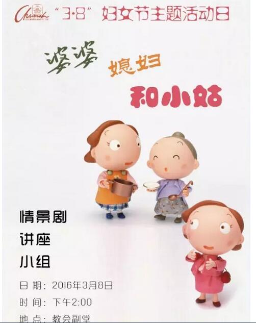 3月8日下午2点,北京基督教会崇文门堂将在副堂举办3·8妇女节主题活动,内容包括情境剧、讲座、分组讨论。
