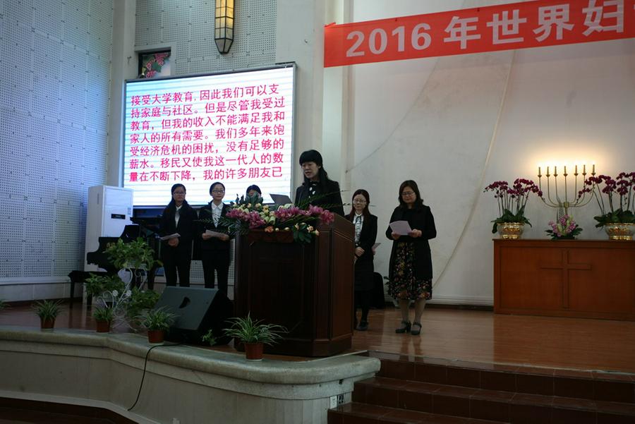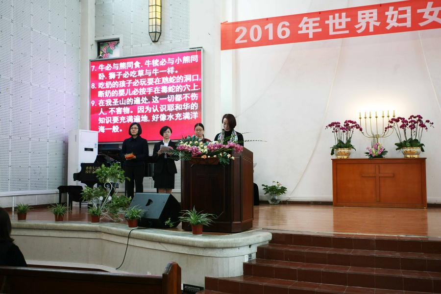 3月4日上午,广东协和神学院与协和堂在协和礼拜堂共同举行“2016年世界妇女公祷日”崇拜。崇拜由黄招萍牧师主礼;王媛牧师、谢丽煌传道、王碧燕老师、张就老师、陈曼青老师、杨榕华同学、蔡嘉嘉同学、陈燕儿同学、主恩同学辅礼;张就老师司琴;邱丹老师作《凡接待小孩的,就是接待我》证道。崇拜由黄招萍牧师祝福作结。