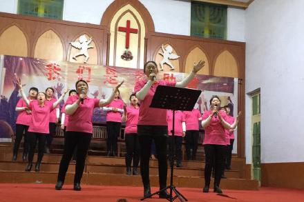 山东寿光市基督教灵风堂于3·8妇女节举办敬拜赞美活动,传递姐妹是帮助者的信息。