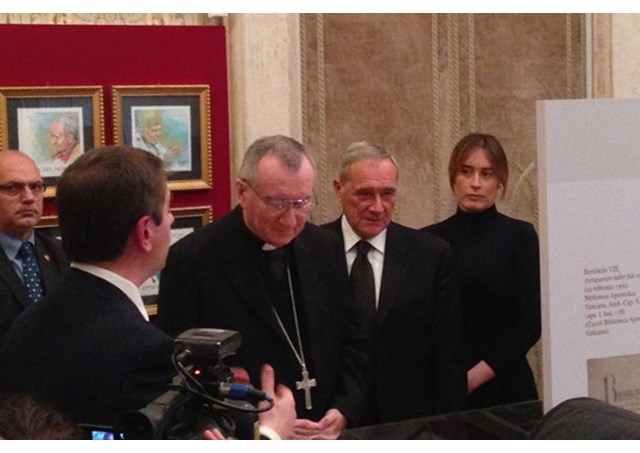 梵蒂冈电台3月16日消息:圣座国务卿帕罗林枢机3月15日晚间出席禧年历史展览揭幕仪式,祝愿叙利亚在五年内战后终能找到和平,冀望日内瓦和谈能带来具体成果。