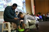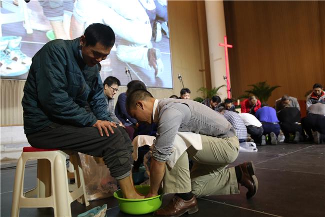 2016年3月24日星期四晚上七点,受难周进入第五天,北京市基督教海淀堂举行了此堂历史上第一个濯足聚会,12位执事为信徒洗脚。