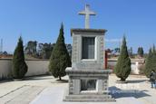 他的墓碑差不多有五米高,在一所小教堂的庭院里,最上面有十字架,东南西北每个面刻着不同的字,传达出关于这位牧师的不同信息。
