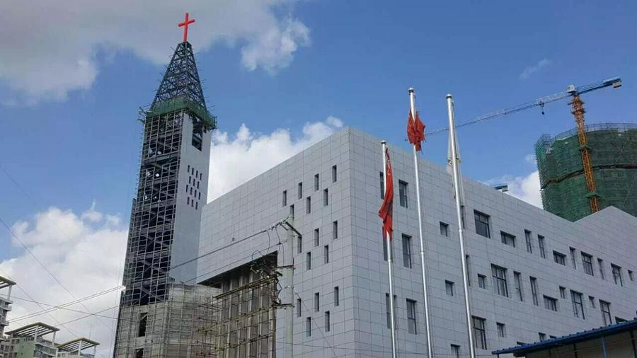 日前,昆明北辰教会因旧址房租到期,已搬入新堂附属楼“益人楼”聚会。新的北辰教堂位于盘龙区,正处于建设当中,目前主体建筑已完工并立起了十字架,将于今年8月20日举行献堂典礼。