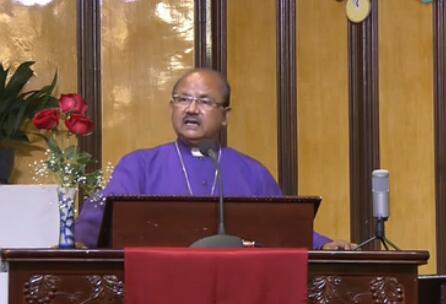 “弟兄姐妹,在耶稣基督里问候大家平安。”亚撒利雅主教以问候进入证道主题。他着重分享了五旬节的信息。使徒行传2章记载了彼得在五旬节的证道,当时彼得引用了先知约珥的话“到那时候,凡求告主名的,就必得救”。