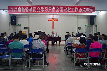 据中国基督教网站报道,此次会议由宜昌市基督教两会的杨军志牧师主持,宜昌市民族宗教局长邓希康负责讲解全国宗教工作会议精神,来自市、区、县各教会的的牧师、长老、教师和传道参加会议。