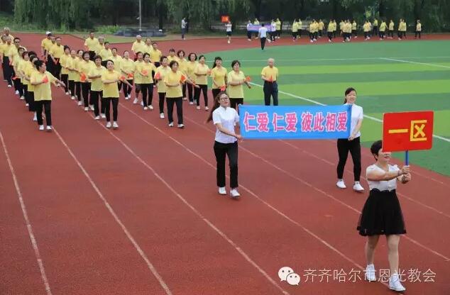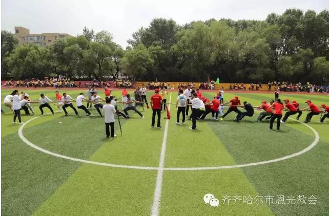 6月18日,黑龙江齐齐哈尔恩光教会在齐齐哈尔市第二中学举办了第六届全信徒运动会,13支队伍700多人参加。