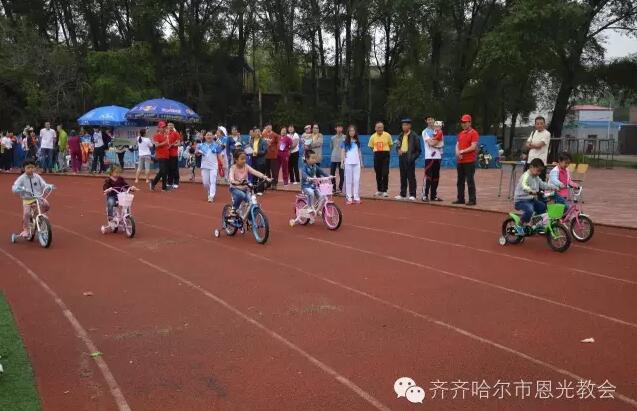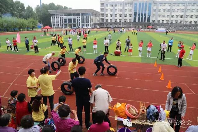 据齐齐哈尔恩光教会微信报道,本届运动会的比赛项目有:铺路搭桥、托球接力、穿呼啦圈、滚轮胎接力、大拖鞋、自行车比慢、接力赛跑、跳大绳、拔河等项目。