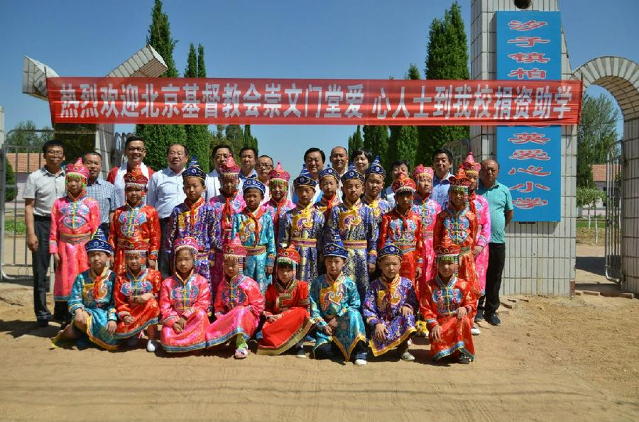 据崇文门堂网站消息,杨建立牧师带领3名同工于6月1日将崇文门堂全体弟兄姊妹的爱心资助送到蒙古族孩子们的手中;“也将来自耶稣基督的爱,播撒在蒙古族孩子们的心田。”