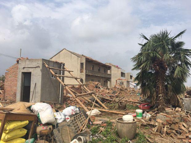 涂桥村受灾相对严重,已无法开车进入,只能步行或者骑电动车。入村的时候发现那里没有帐篷也没有救援车辆,只有几户村民在收拾东西。一问才知,村民们都被要求转移了,拿着政府补贴去自寻住处,或者住在别处临时搭建的帐篷里。在去教会的路上,被吹断的树干、被吹飞的瓦片散落在各处,路两旁很多断壁残垣,俨然一个破败的村庄,不再安静祥和、绿意盎然。