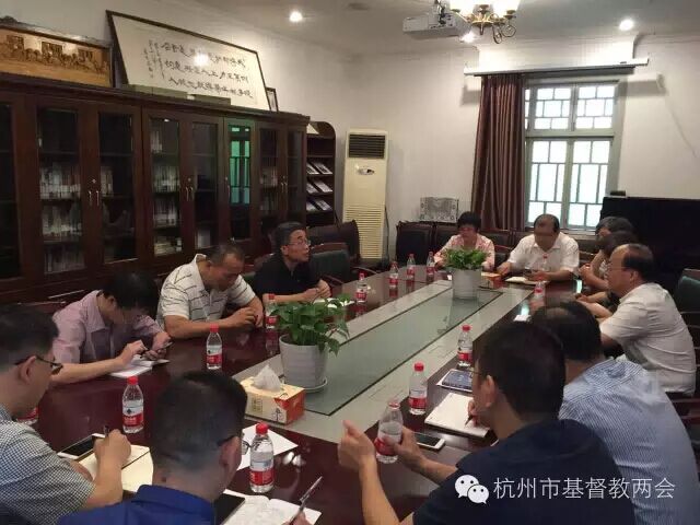7月5日上午,杭州市民宗局副局长唐明壮、调研员刘承松一行,前往杭州市基督教两会检查指导G20峰会安全保卫、服务保障工作。杭州市基督教三自爱国委员会主席孙彰道牧师从以下几个方面介绍了杭州教会为迎接G20峰会开展的各项安全保卫服务保障工作。