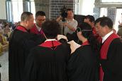 接着,辽宁省基督教两会按牧团队的7位牧者进行按牧,张月竹牧师主礼,其他6位牧者襄礼。按牧结束后,按牧团队给刚被按立的牧者穿圣袍、戴圣带、发圣经,随后有人给被按立的8位牧者送上鲜花。