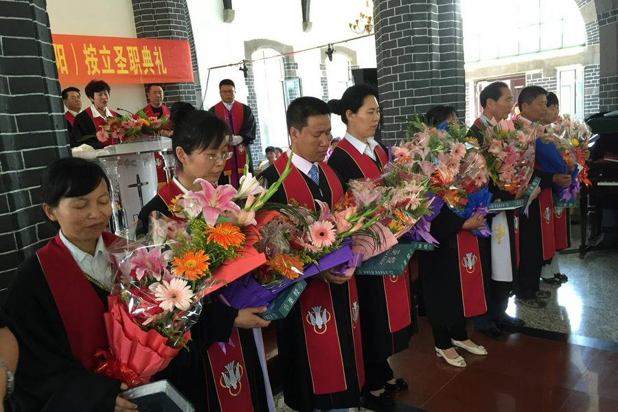7月8日上午9:00-11:00,辽宁省基督教两会在辽阳市基督教会中心堂举办按牧典礼,按立了5位牧师和3位长老。被按立的8位牧者中有7位在辽阳市服侍,1位在丹东服侍。