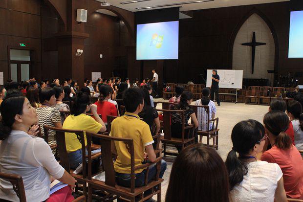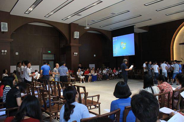 7月14日,福建基督教会圣乐培训班的第四天,盛勇老师受邀为学员们进行《合唱指挥》课程的培训,为了让所有学员更直观的看见现场参与互动,椅子被排成了“U”型。
