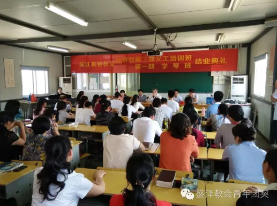 近日,江苏省吴江市盛泽基督教会举办安得烈义工培训班和学琴班举行结业典礼,该培训班为期两年,共39名学员获得结业证书。