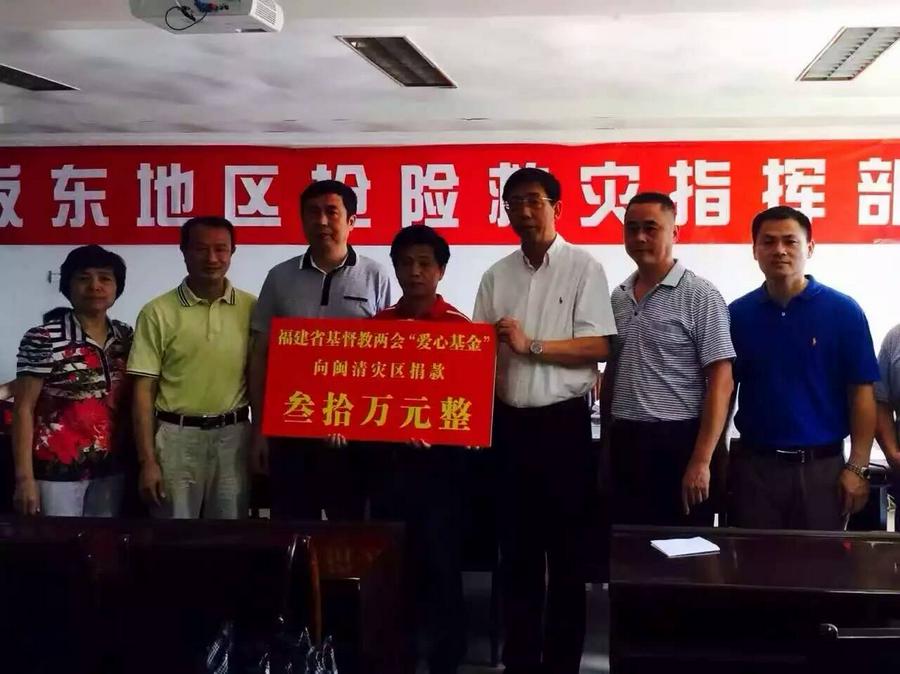 7月15日,福州花巷堂陈立福牧师也带领同工赶赴灾区,慰问受灾信徒并捐款10万元,福州还有多间教会前往灾区献爱心。9月10日,洪灾发生第二天,南平教会在收到闽清信徒的求助信息后,立刻筹集奉献款送去闽清,帮助受灾信徒购买一些生活必需品。7月20日,福建南平基督教会梅山堂同工再次前往坂东镇福源堂进行探访慰问,并送去奉献款,同日,福州宗教界发起为闽清、永泰“尼伯特”台风灾区捐款仪式,福州各地教会踊跃奉献,当场共捐款379000元人民币。