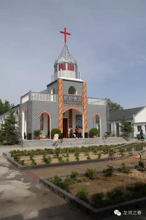 沿水泥路往东,行百余米,过几棵老刺槐树,便见一座新建的教堂,十字架矗立在教堂尖顶上,在阳光照耀,格外明亮。教堂周围,停满车子,院落内外,人头攒动。