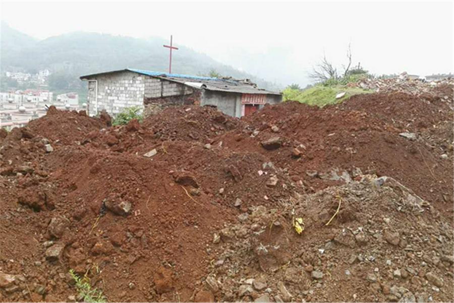 教会负责人胡姊妹告诉福音时报,当他们来到教会的时候被眼前的景象惊呆了。“很多的土堆在教堂的门口,是用推土机推过来的,现在土堆很高,我们下不去,进不了教会了,”她很焦急说。