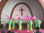礼拜过程中,山西路堂舞蹈组献上舞蹈《耶和华祝福满满》,《野地百合》和《这条路上我们一起走》。