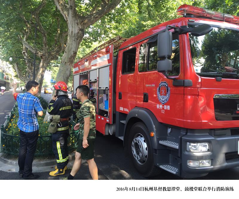 2016年8月14日下午3时,思澄堂、鼓楼堂联合在思澄堂举行消防演练。思澄堂、鼓楼堂全体专职同工、各侍奉团队负责人、全体安保组成员和和专、兼职消防人员观摩消防演练。