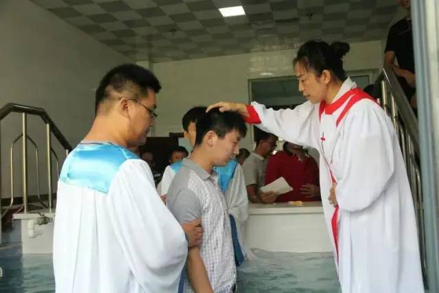 鞍山市兴盛基督教会的微信平台登出了受洗者接受洗礼时的照片,并附有经文劝勉信徒: “耶稣说:‘我实实在在地告诉你,人若不是从水和圣灵生的,就不能进神的国。’—— 约3:5”