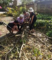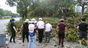 在蒿志强牧师、陈妙真牧师的带领下,每位参与者人手一把锯子、一副手套,简单的装备,满满的热情,干起活来,个个都是“大力士”,你锯断来我搬移,浑身是汗,直到五点多,龙虎山路的人行道总算畅通。当遇到有人上前询问时,大家便满怀自豪地告之“我们是曾厝垵基督教堂救灾支援队”。