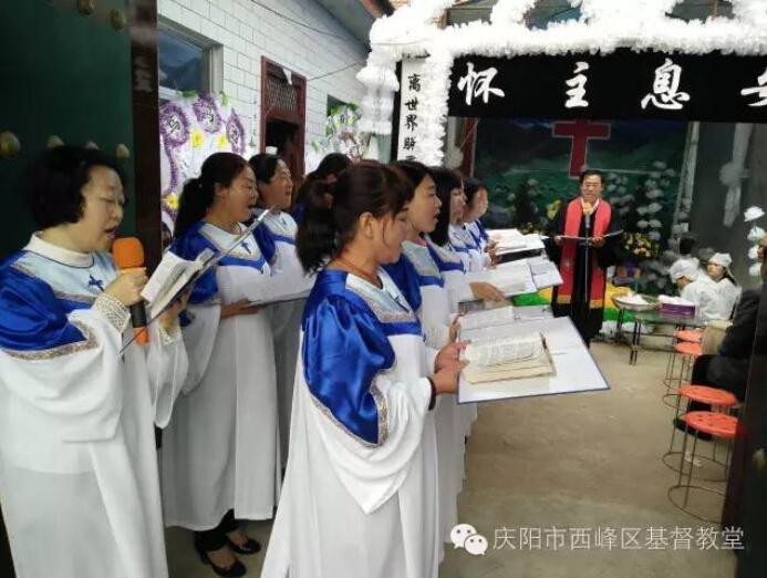 9月25日,甘肃庆阳市西峰教会的姚长老带着教会乐队和诗班成员到乡下参加一个追思礼拜,姚长老在追思礼拜上证道。