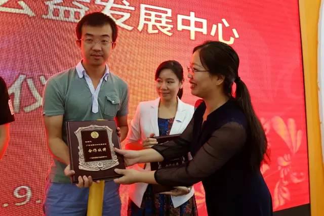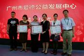 对话结束后,广州市爱德公益发展中心举行了正式的揭牌成立仪式。广州爱德的理事和嘉宾一起参与揭牌,并由爱德基金会副理事长兼秘书长、广州市爱德公益发展中心理事长丘仲辉等給在场的广州爱德理事们颁发了聘书,并为广州爱德合作的四家优秀合作伙伴包括广东省游心公益基金会、CSR环球网、顺德社会创新中心及深圳市图欧公益事业发展中心代表颁发了优秀合作伙伴牌匾。而广东省游心公益基金会回赠了一份珍贵的礼品,即一幅由其所开展的抗战老兵关爱项目支持的一位91岁高龄的抗战老兵所书写的题为“爱满天下,德佑中华”的书法作品。