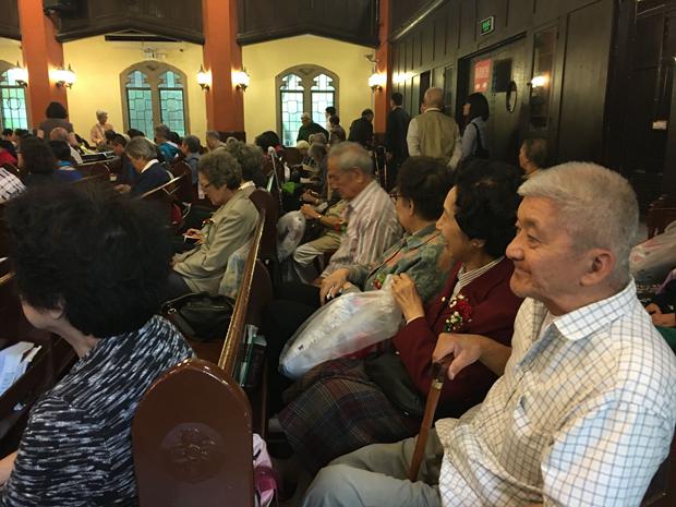 上海国际礼拜堂位于徐家汇衡山路53号,是上海规模最大的基督教堂。教堂最后几排设有老年信徒专座,这里也是附近老年信徒首选的聚会场所。