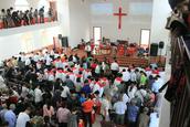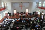 教会负责人钟福金介绍了建堂经过。古龙岗镇多风水文化,风水第一村三僚村即位于此地。90年代初,福音传至此地,几十年来,教会一直辗转各信徒家中进行聚会,期间也受到异端的骚扰。2012年,经政府同意,教会同工多方筹措花费7万获得批地,教会同工介绍,之所以选择此地,因为信徒三分之二聚集在附近,且环境较好。因资金等原因,教会于14年6月份开始建堂,今年6月份建堂基本完工,总计花费120万。教堂目前有百余名信徒,两位传道人,1位神学生。